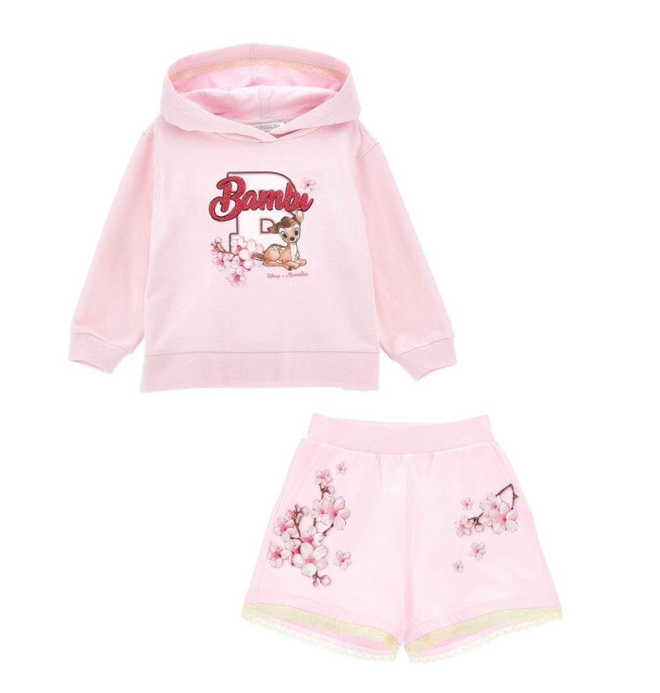 Monnalisa SS25 pink Bambi hoodie & sporty short set.