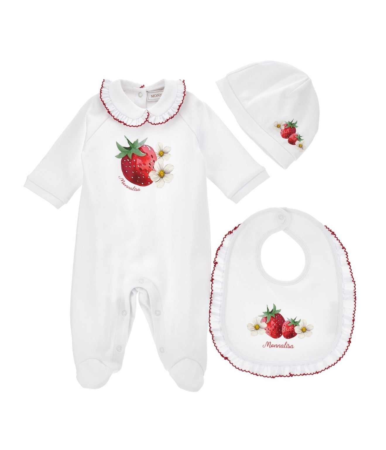 PRE ORDER - monnalisa white strawberries babygrow 3 piece set